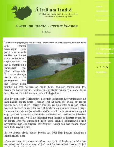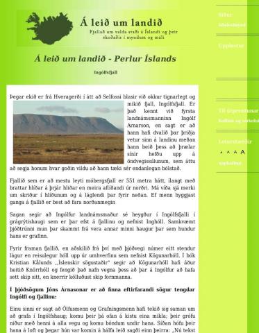 Hér er sagt frá völdum stöðum á Íslandi, minnisvörðum, söfnum, kirkjum og öðru merkilegu sem allir ættu að hafa bæði gagn og gaman af að kynnast á leið sinni um landið. Oft er það nefnilega svo að við gefum ekki nægilega mikinn gaum að því sem verður á vegi okkar, en til þess að verða vel læs á landið og þjóðarsálina er nauðsynlegt fyrir börn og fullorðna að mynda sér þekkingarvörður um landið. Efnið er aðgengilegt í vefútgáfu og einnig til útprentunar, en sniðugt er að prenta það út til að hafa með í ferðalagið og lesa það svo upp þegar á staðinn er komið. Góða ferð!