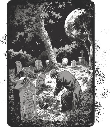 Það voru slíkar hugsanir sem knúðu mig áfram en í dag fæ ég hroll þegar ég hugsa til þess sem ég gerði. Ég rændi grafir og bútaði niður lík og nýtti mér bein og líffæri eftir þörfum. Ég sé enn fyrir mér dauð starandi augu líkanna. Sá hryllingur fylgir mér stöðugt eins og skugginn.