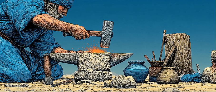 Í kringum árið 1300 f.Kr. kynntust menn járni og má segja að það hafi leyst brons af hólmi. Járn var bæði ódýrara og harðara en brons, auk þess sem auðveldara var að verða sér úti um það.