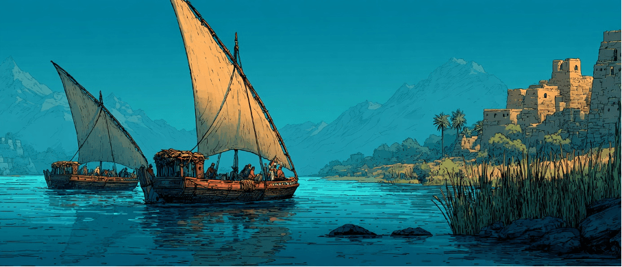 Fyrstu stóru bátarnir sem vitað er um munu hafa siglt á Nílarfljóti í kringum árið 4000 f.Kr. Þar notuðust menn við bæði segl og árar.