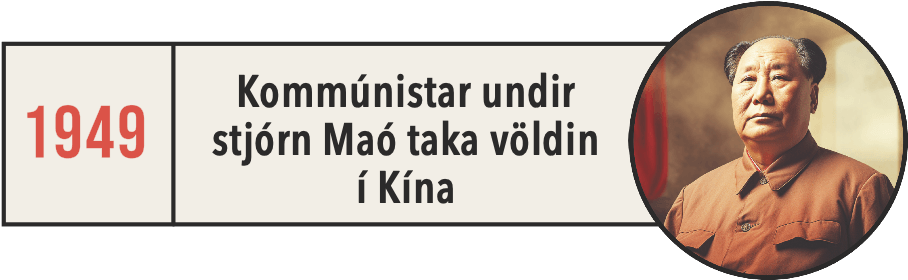 Þegar seinni heimsstyrjöldinni lauk tók aftur við blóðugt borgarastríð í Kína sem lauk með sigri kommúnista árið 1949 og hafa þeir haldið völdum æ síðan.