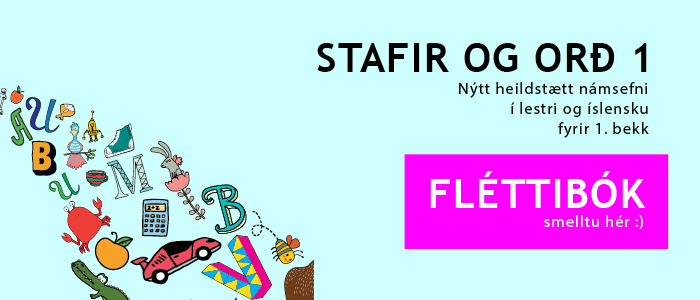 Stafir og orð 1 – Lestrarvinnubók er fyrsta bókin af fjórum þar sem unnið er með stafina, fyrstu skrefin í lestri og grunnatriði í skrift.  Þá er þar einnig að finna stutt þjálfunarverkefni í skrift auk annarra æfinga.  Efnið skiptist í 4 bækur sem saman telja rúmlega 200 blaðsíður í prenti.  Þið getið valið um að skoða þær sem flettibók eða þá í pdf þar sem þið getið nálgast efnisyfirlit hverrar bókar fyrir sig.